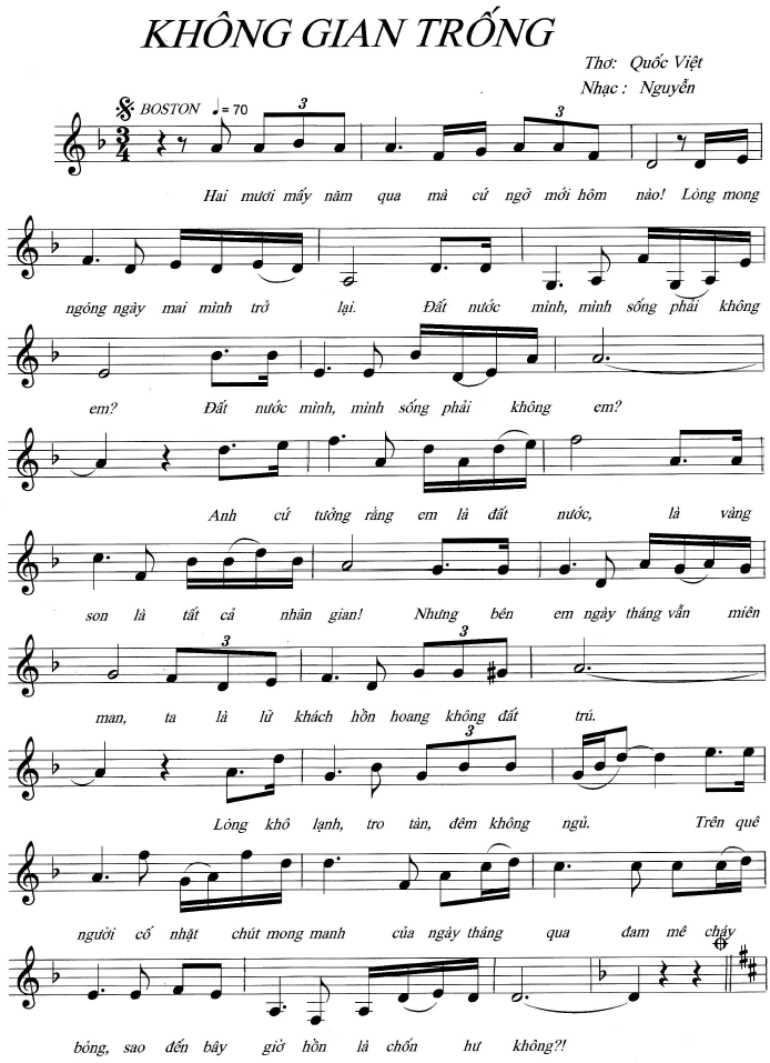 bản nhạc KHÔNG GIAN TRỐNG, thơ: Quốc Việt, nhạc: Nguyễn, trình bày: Ngọc Tân