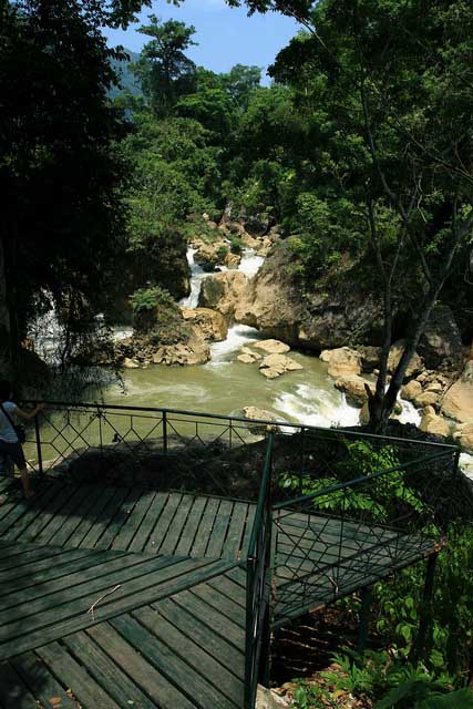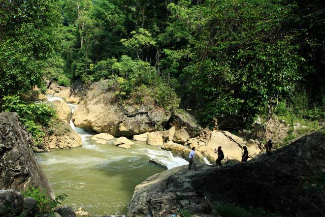 Dịu dàng qua động Puông, dòng sông Năng chuyển mình sôi động thành thác Đầu Đẳng khi bị hàng trăm tảng đá lớn chặn lại ở bản Húa Tạng với 3 bậc thác chênh nhau 3 – 4 mét. Tiếng thác reo có thể nghe thấy ngay từ khi bước chân từ bến thuyền vào khoảng 100m làm bước chân thêm háo hức. Có thể ngồi ngắm thác trên những phiến đá lớn hoặc trên ban công gỗ xây phía trên cao với sư thư thái tận hưởng.