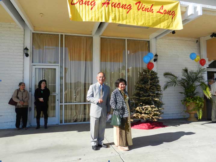 Chú thích: Giáo sư Đào Khánh Thọ và Giáo sư Võ Ngọc Dung (Cựu Hiệu trưởng trường Trung Học Tống Phước Hiệp - Vĩnh Long) đang tiến vào Nhà hàng.