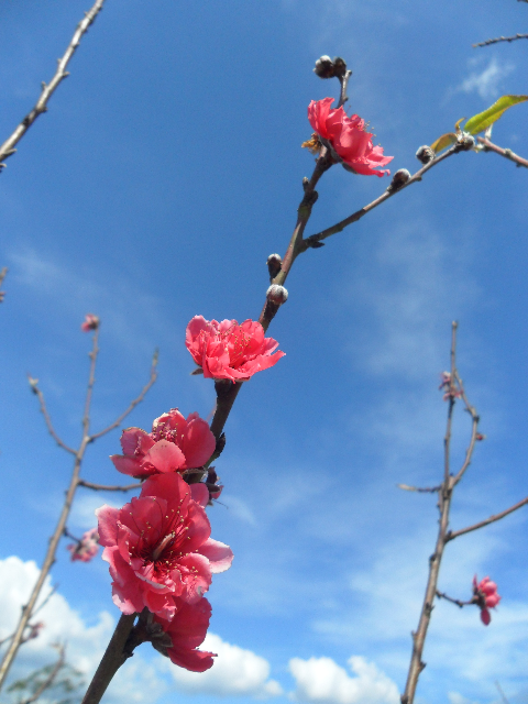Cùng chiêm ngường hoa đào Đà Lạt khoe sắc thắm, nổi bật trên nền trời xanh.