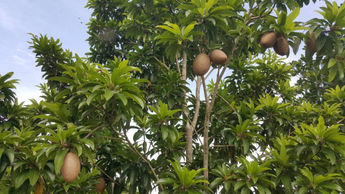Rồi thì, ơ ơ, trái gì vậy? Sa bô chê! Những trái sa bô chê nhỏ vừa được nhìn thấy như một khám phá mới với đám “dân thành thị” chúng tôi. Sa bô chê chưa vào mùa, nhưng lát đác vẫn có, vẫn dư làm chúng tôi cảm thấy thích quá là thích.