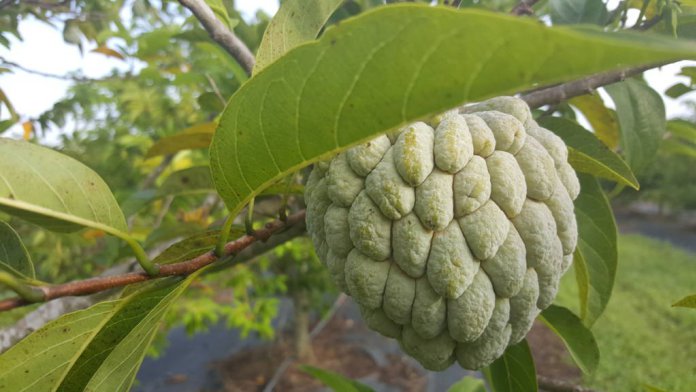 Mãng cầu dai ở xứ này thuộc dạng hiếm. Đặc biệt hơn là nó dai, thịt dầy và ngọt. Trái mãng cầu khi nở gai chín tới cho kịp hái có màu xanh như ngọc. Đẹp dịu dàng. Khi mãng cầu ra tới chợ, có thể bạn đã không còn cơ hội để nhìn màu sắc nguyên thủy của nó, vì mãng cầu rất mau xuống màu khi chín mềm. Nói vậy để lại thấy cái thú nhìn ngắm trái cây còn trên cành nó đã đời ra sao. Đó là chưa kể cảm giác được giơ tay lên hái ngay trái mà mình xí phần.
