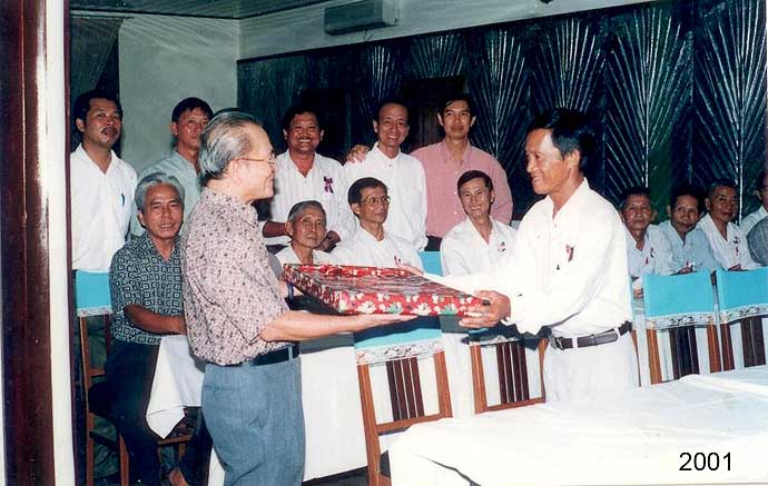Cựu HS TKH Trần Ngọc Châu Đại điện Ban Tổ Chức buổi Họp Mặt tặng quà cho
