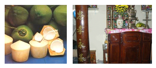 Lá dừa khi còn non dùng gói bánh, cho nên có tên bánh lá dừa, còn thân cây dừa ngày xưa làm cột nhà hoặc khắc trạm những đôi liễn để thờ nhà xưa.