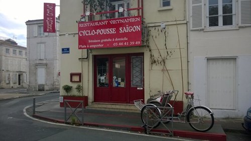 trước tiệm ăn "Xích lô kéo Sài Gòn" (10 quảng trường Cordeliers, 17000 La Rochelle)