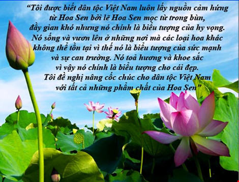 trong mối quan hệ Việt-Mỹ. “Chúc cho mối quan hệ nồng ấm giữa nhân dân hai nước chúng ta ngày càng phát triển”.