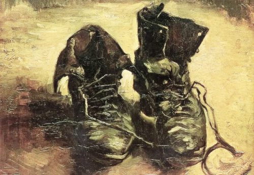 Trên đường đi, hai người bắt gặp một đôi giày cũ nằm giữa đường. Họ cho rằng đó là đôi giày của một nông dân nghèo làm việc ở một cánh đồng gần bên, có lẽ ông ta đang chuẩn bị kết thúc ngày làm việc của mình.
