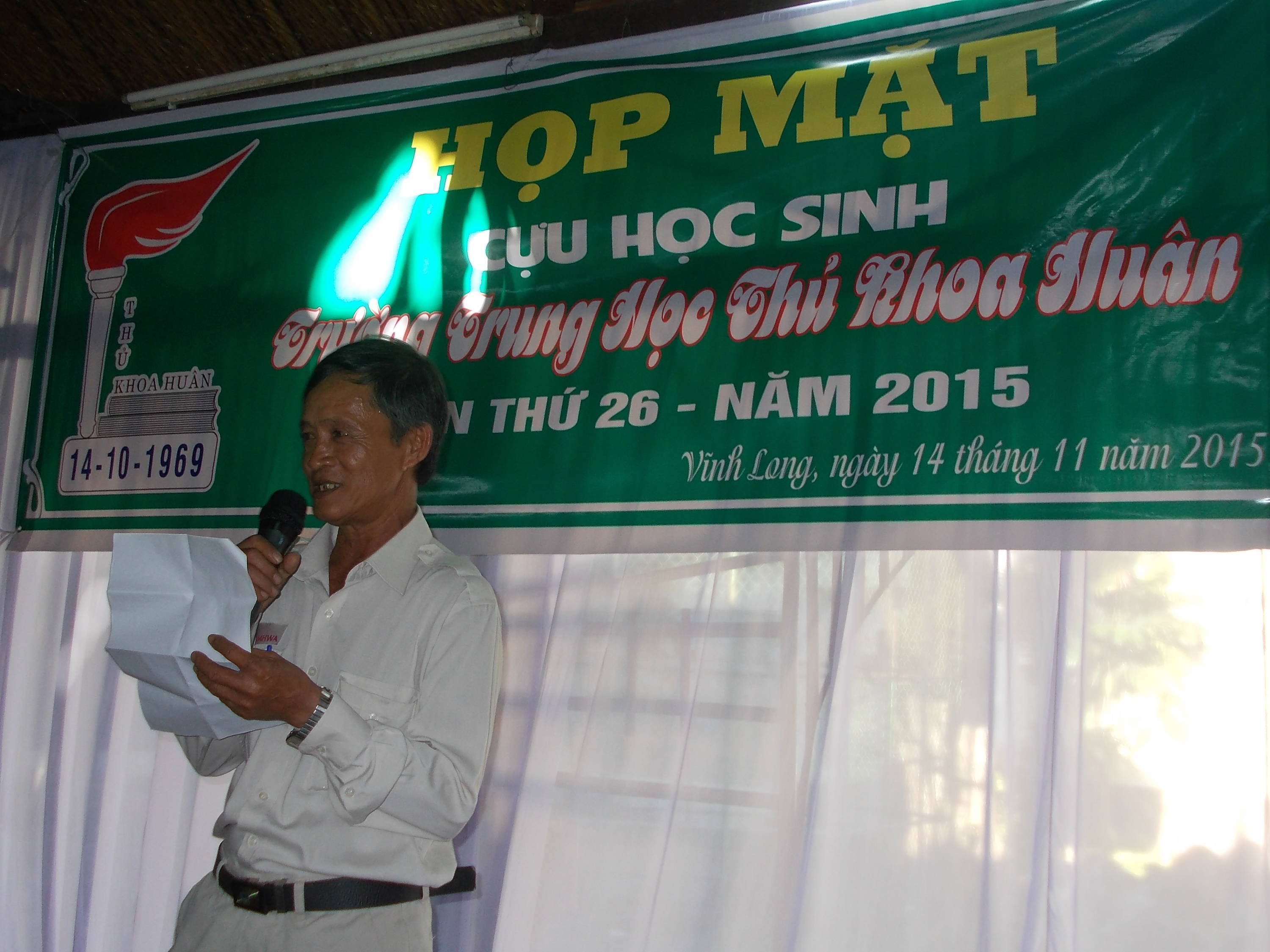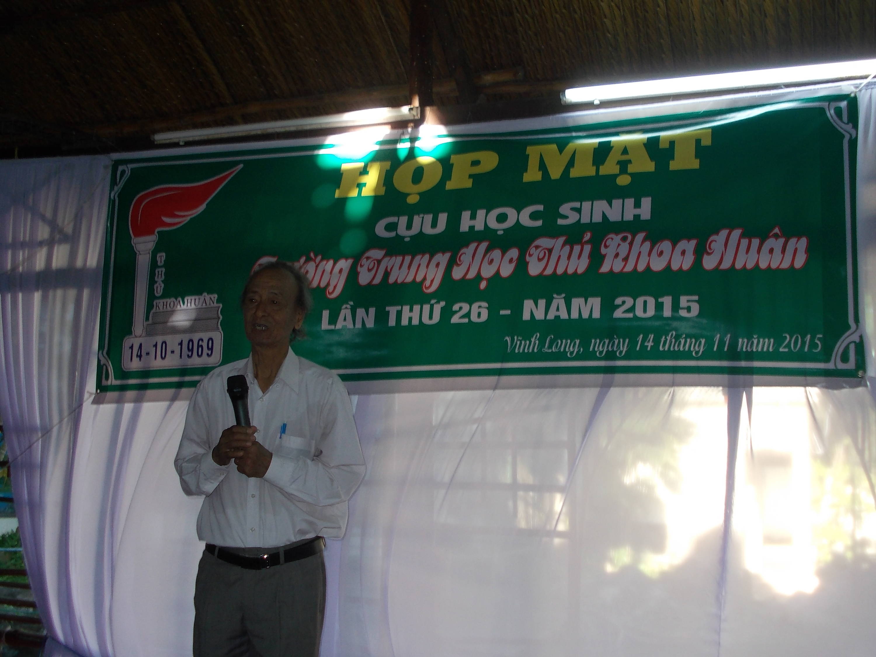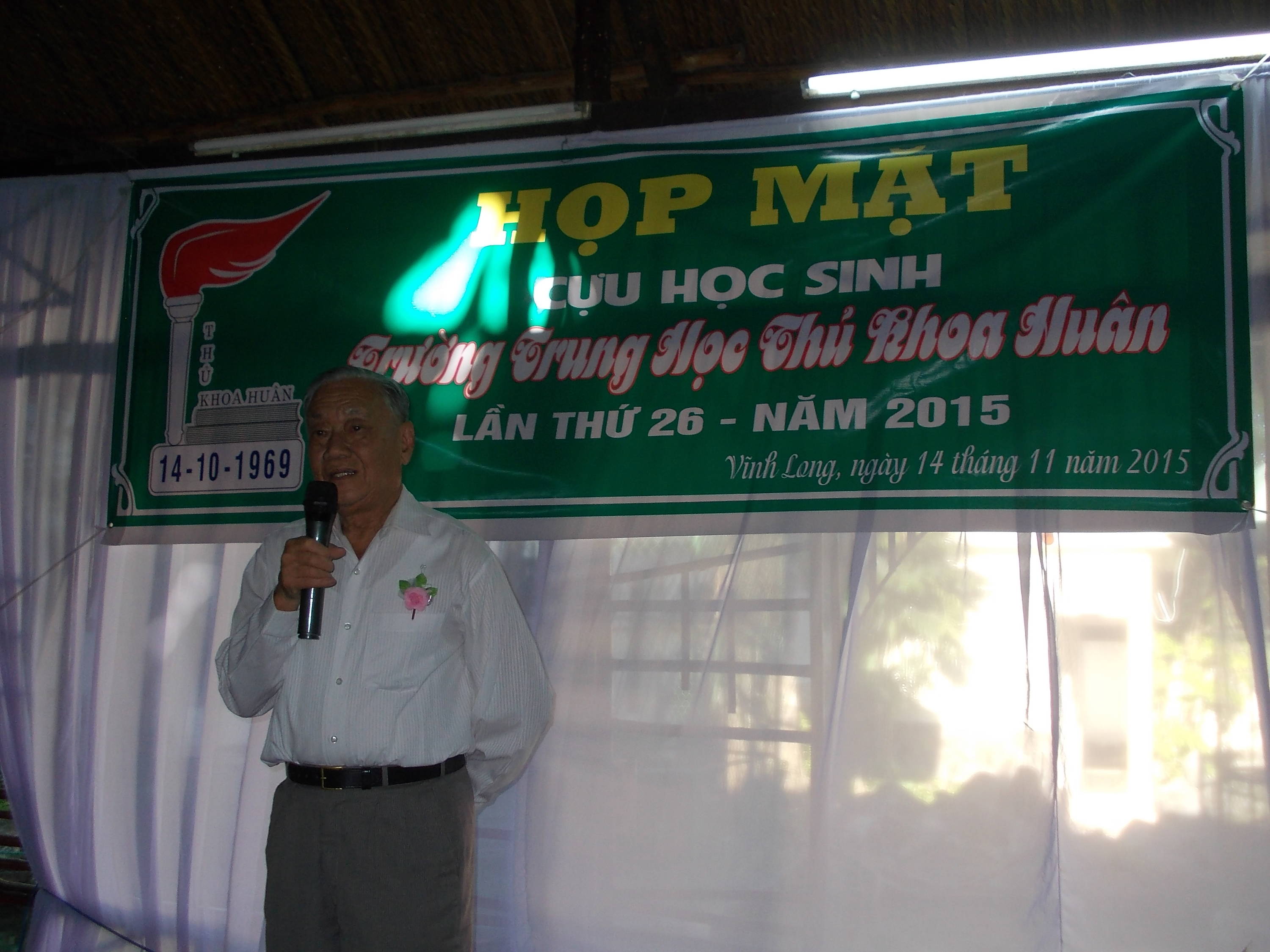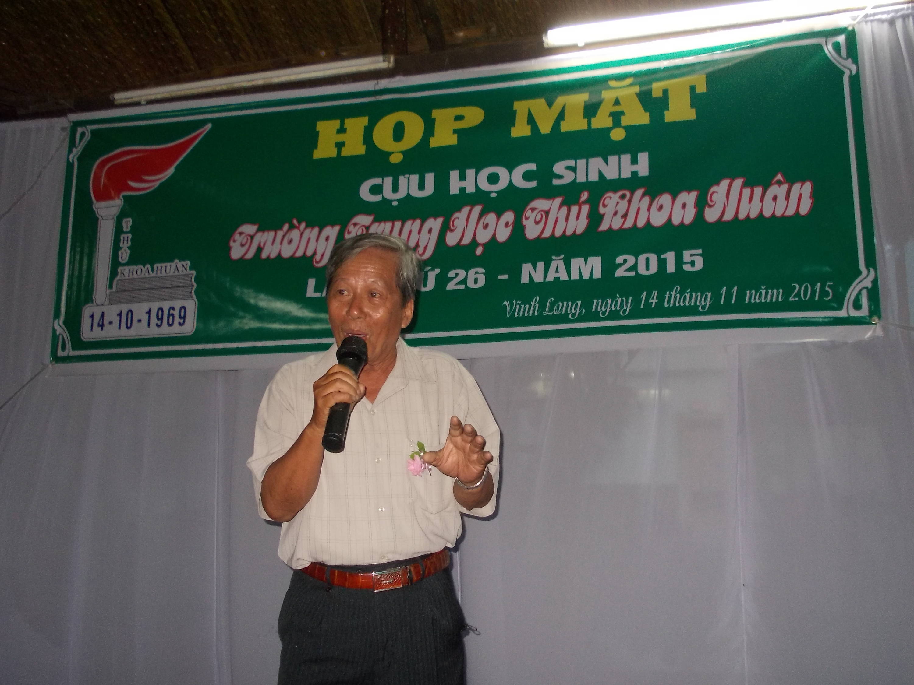 Tiếp theo thầy Lê Hoàng Minh, sơ lược về những buổi họp mặt hằng năm của chúng ta. Tôi vô cùng hoan nghênh sự năng nổ và hợp tác nhiệt tình của quý thầy và các em CHS bổn trường, nên cuộc họp mặt thứ 26 này thực hiện được và tạm gọi là chu đáo hơn sự mong muốn , khi nhà trường Thủ Khoa Huân ngày xưa không còn là trường Thủ Khoa Huân ngày nào nữa rồi.