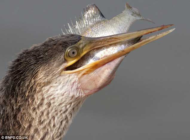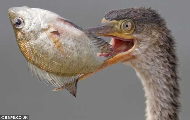 Sau đó dùng mỏ chộp lấy nó rồi nuốt chửng.