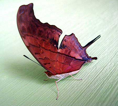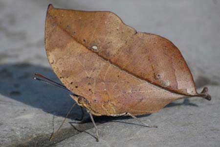 Khi cánh của loài bướm này gấp lên, trông nó giống như một chiếc lá rụng, đôi khi có màu xanh lá, thường là nâu. Chân loài này khá ngắn, chúng sống trong các khu rừng xanh tốt, phân bố ở New Guinea, Nam châu Á, Madagascar và Ấn Độ.
