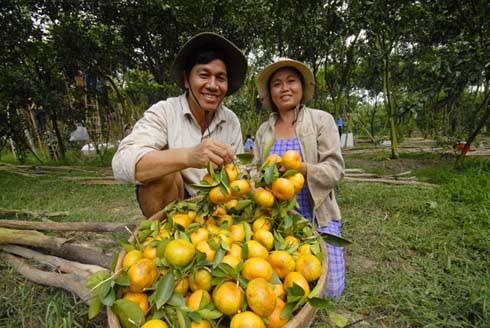 Niềm vui được mùa bội thu của đôi vợ chồng nông dân miệt vườn Tây.