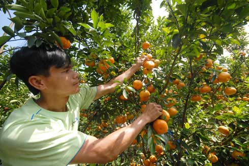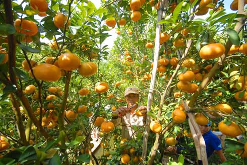 Quýt chín đỏ cây ở các nhà vườn Lai Vung.