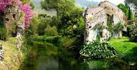 Ninfa, một khu vườn đẹp với hoa dây leo bao phủ lên các tàn tích từ thời trung cổ tại Ý