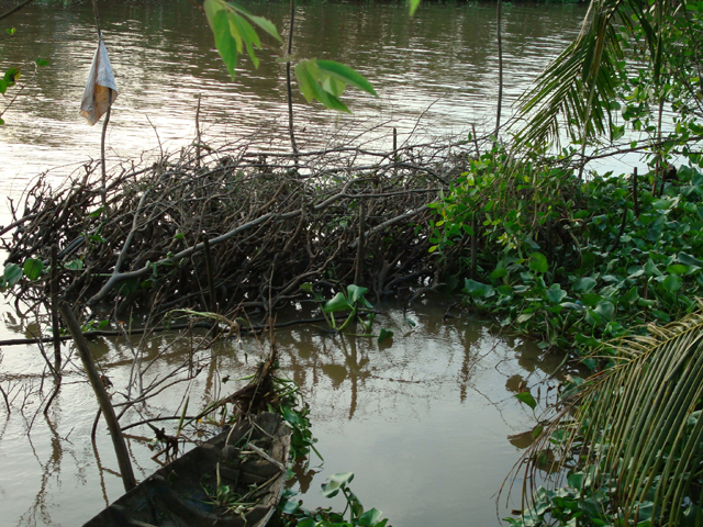 Một đống chà ven sông do hàng trăm nhánh cây chất lại