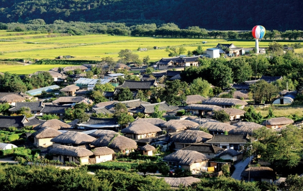 Làng Hahoe ở Andong là hai trong số những ngôi làng cổ tiêu biểu cho văn hoá Hàn Quốc bên cạnh làng Yangdong. Ngôi làng 500 tuổi còn là nơi bảo tồn đời sống của những gia tộc Hàn Quốc với những gia trang, lớp học, trường dạy Nho Giáo; kiến trúc nhà cửa và cấu trúc làng mạc truyền thống từ thời đại Joseon và cả những ngôi nhà tranh mái lá truyền thống của người dân. Cảnh quan núi rừng, sông nước quanh làng tạo nên những bức tranh thuỷ mạc huyền ảo vốn đã đi vào trong thơ ca từ thứ kỉ 17, 18 bởi vẻ đẹp kì vĩ. Năm 2010, làng dân gian Hahoe đã được Unesco công nhận là Di sản văn hóa thế giới.