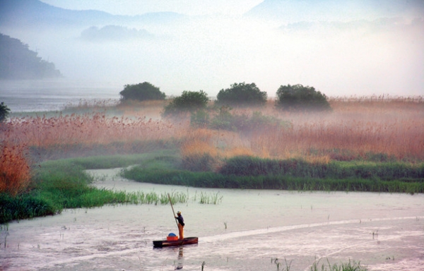 Ở tỉnh Nam Gyeongsang có một địa điểm khiến ai cũng phải mê mẩn khi tới thăm quan: Uponeup, vùng sông nước ẩm ướt lúc nào cũng mờ mờ ảo ảo trong khói sương. Đây là một nơi lý tưởng cho các hoạt động chèo thuyền, lái xe đạp, và ngắm những chú chim bay trong màn sương. Phong cảnh thiên nhiên tuyệt vời của Uponeup là nơi rất hấp dẫn du khách tham quan thưởng ngoạn.