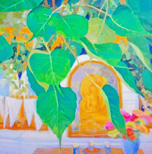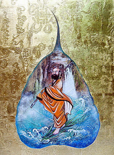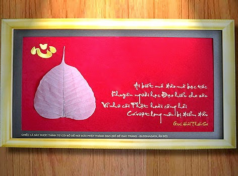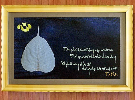 (*) Những chiếc lá bồ đề trên các bức thư họa & tranh ghép trên được thỉnh từ chính cây bồ đề nơi đức Phật nhập diệt tại Bồ Đề Đạo Tràng - Ấn Độ về Việt Nam.