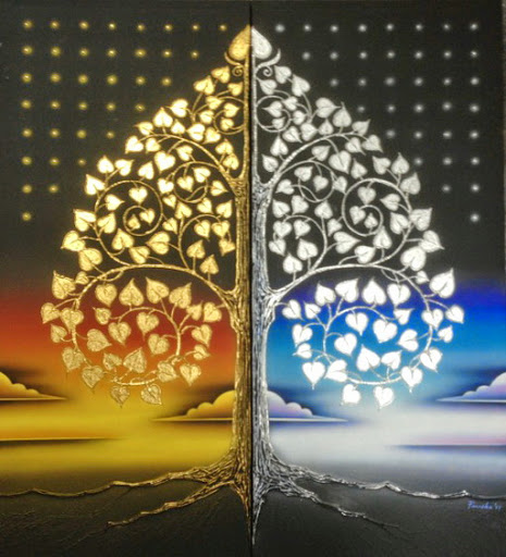 Lá bồ đề một trong những biểu trưng Phật Giáo và cây Noel một trong những biểu trưng Thiên Chúa Giáo:
