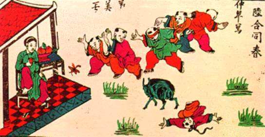 Tranh dân gian “bịt mắt bắt dê” của làng Đông Hồ (Bắc Ninh).