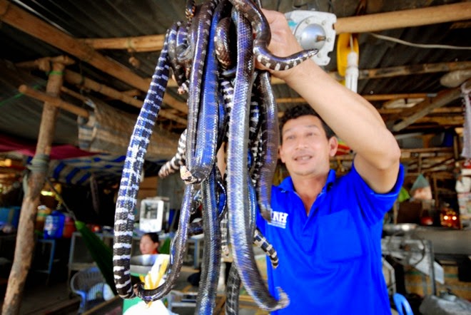 Năm nay ngoài những loại thông thường còn có cả loại rắn lục đuôi đỏ (loại cực độc, thường tấn công người dân nhiều nơi ở đồng bằng sông Cửu Long gần đây) được người dân Campuchia mang qua bán để phục vụ ngâm rượu và làm thuốc cho nam giới, với giá từ 50.000 đến 100.000 đồng/con tùy trọng lượng. Rắn mối cũng khá đắt hàng với giá bán từ 80.000 -90.000 đồng/kg. Loài này phần lớn được nhập từ Campuchia với số lượng rất lớn mỗi ngày.
