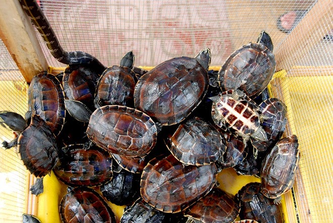 Mùa lũ cũng là mùa nhiều điểm bán rùa mọc lên. Các loại rùa quý hiếm cũng có mặt tại chợ, với giá bán từ 280.000 đến 350.000 đồng/kg, nhưng phần nhiều khách hàng là các nhà hàng, quán ăn lớn. Bà Ngô Phương Mai, bán rùa tại chợ Khánh An, cho biết, cứ vào mùa nước nổi là bà sang Campuchia mua rùa về bán, vì loài này trong nước giờ rất hiếm. Giá rùa mùa lũ thường rẻ bằng một nửa so với các tháng khô.