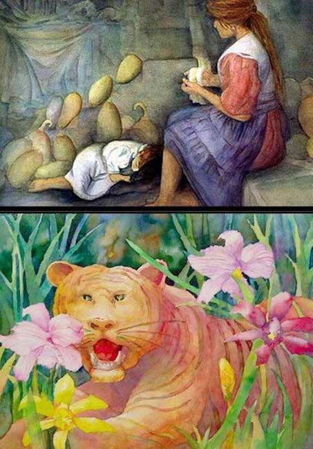 Những bức tranh từ con người đến động vật đều do trí tưởng tượng của người họa sỹ tạo nên.