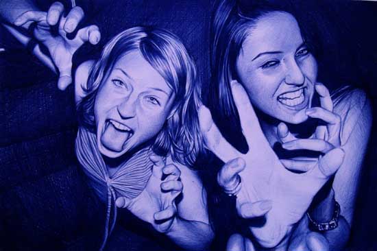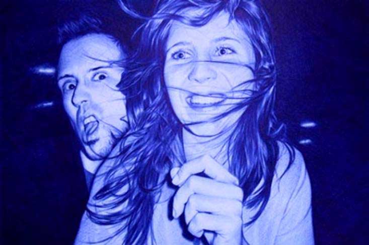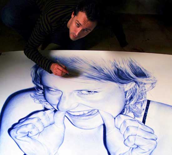 Anh Juan Francisco Casas, họa sĩ 32 tuổi người Tây Ban Nha có công cụ vẽ rất đặc biệt, đó là những chiếc bút bi. Phong cách vẽ đặc biệt đã đem đến giải nhì cuộc thi Hội họa Tây Ban Nha năm 2004 cho anh chàng này. Chỉ với 1 chiếc bút bi màu xanh và tấm voan vẽ anh đã biến chúng trở thành những bức tranh bằng bút bi giống y như thật. Anh Juan nói rằng anh thích sự đơn giản của những nét bút bi, đồng thời anh cũng muốn khẳng định rằng với 1 nghệ sĩ thì chuyện sử dụng công cụ nào để vẽ là không quan trọng. 1 bức tranh của anh phải mất đến 2 tuần để hoàn thành và có chiều cao tới 6m.