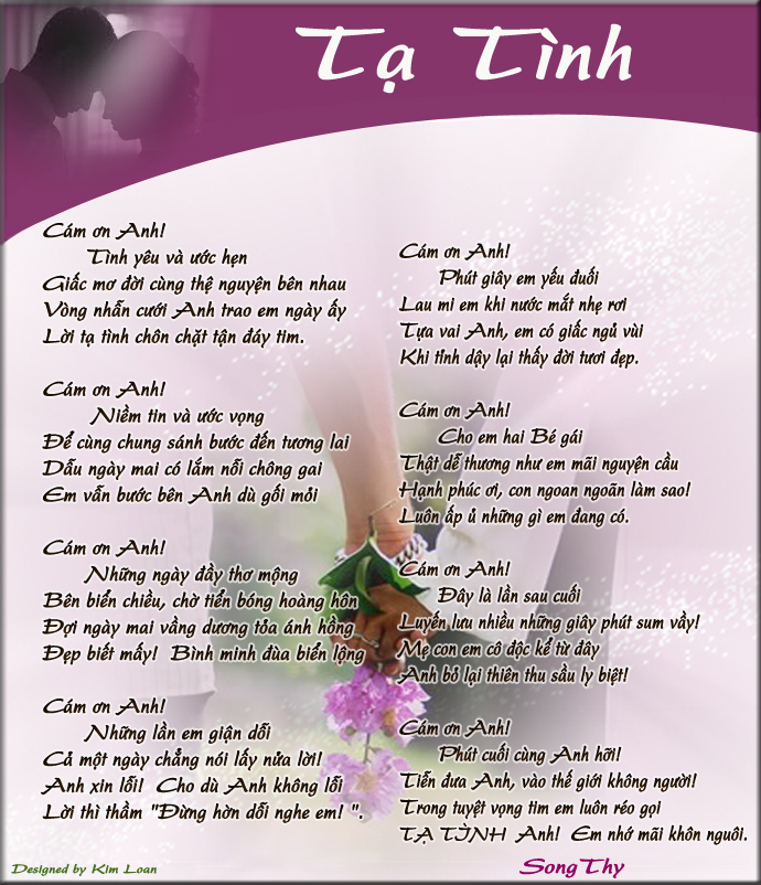 Xin cám ơn bạn Song Thy đã sáng tác 1 bài THƠ rất hay,rất xuất sắc,xác với thực tế trong cuộc đời, Lê trọng Loan. Mong đón nhận những tình khúc khác tuyệt vời lắm,lắm.