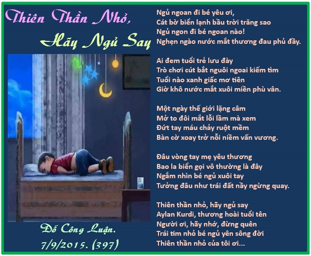 Cảm ơn tác giả đã cho đọc một bài thơ có tính cách thời sự nói lên thảm cảnh của những người rời bỏ quê hương tang tóc để vượt trùng dương tìm cuộc sống An Bình và Tự Do mà điển hình là cái chết bi thương của em Bé trôi dạt trên bờ biển đã làm xúc động lòng người. Trân trọng cảm ơn. TS