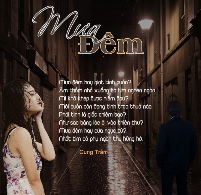 Tình buồn lại thêm buồn trong một khung thơ tranh Mưa Đêm do Kim Loan thực hiện.