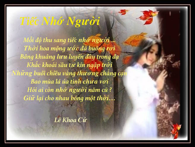 Thơ hay, gây nhiều xúc cảm. Tranh đẹp buồn và thích hạp với nội dung. Hy vọng bài này chia sẻ được cảm nghĩ với những ai đồng cảnh ngộ. Ước mong chính tác giả LKC nhẹ bớt nỗi lòng sau khi thổ lộ tài tình niềm luyến tiếc không nguôi.