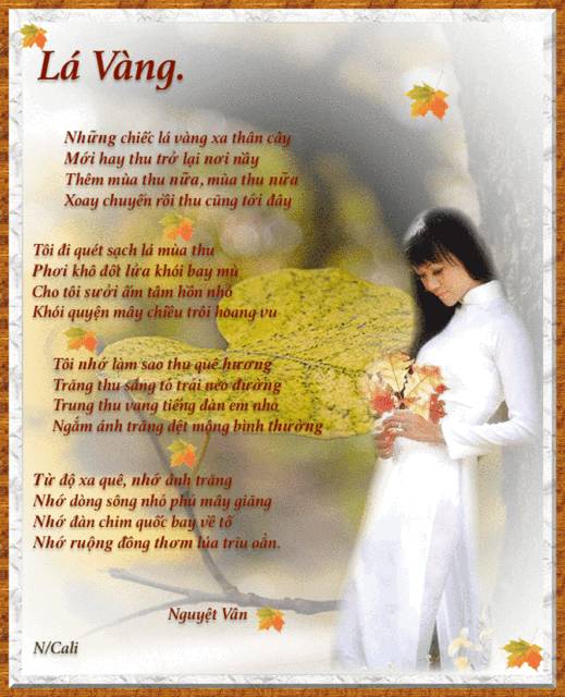 Lời thơ ngọt ngào,đầy âm điệu,gợi nhớ về những mùa thu quê hương với dòng sông nhỏ và . "Nhớ đàn chim quốc bay về tổ. Nhớ ruộng đồng thơm lúa trĩu oằn" Khung thơ tranh đẹp với kỹ thuật ghép hình để chuyển đạt ý thơ qua hình ảnh. Trân trọng cám ơn. Giang Võ
