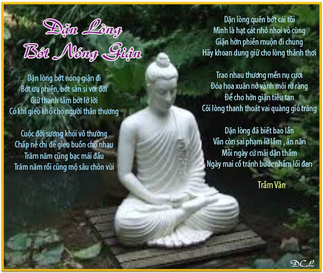 Bài thơ hay nói lên cuộc sống đầy đạo hạnh trong việc tu thân bằng cách tự Dặn Lòng Bớt Nóng Giận, mang một triết lý nhân sinh về cuộc sống trong cỏi vô thường, cùng với hình minh hoạ của khung tranh giúp ta trong cuộc sống thảnh thơi khi biết bao dung và kềm chế bản năng để hướng theo đường thiện vì. "Trăm năm rồi cũng mộ sâu chôn vùi" Chân thành cám ơn. Phương Võ.