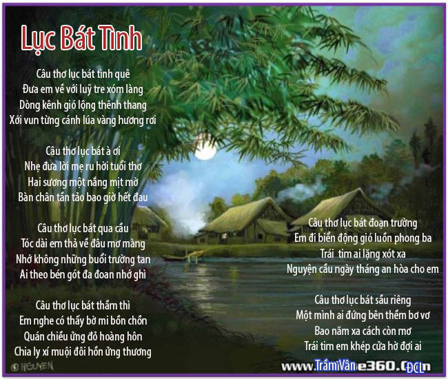 Âm hưởng của lối thơ lục bát thật ngọt ngào, êm êm như một điệu nhạc tình truyền cảm đưa ta vào khung trời quê hương đầy kỷ niệm ...mà hình ảnh khung thơ với những ngôi nhà tranh bên lủy tre làng ven dòng sông gió lộng thênh thang dưới ánh trăng miền thôn dã đã tô đậm Tình Quê bàng bạc trong thơ. Trân trọng cảm ơn. Thiện Lê