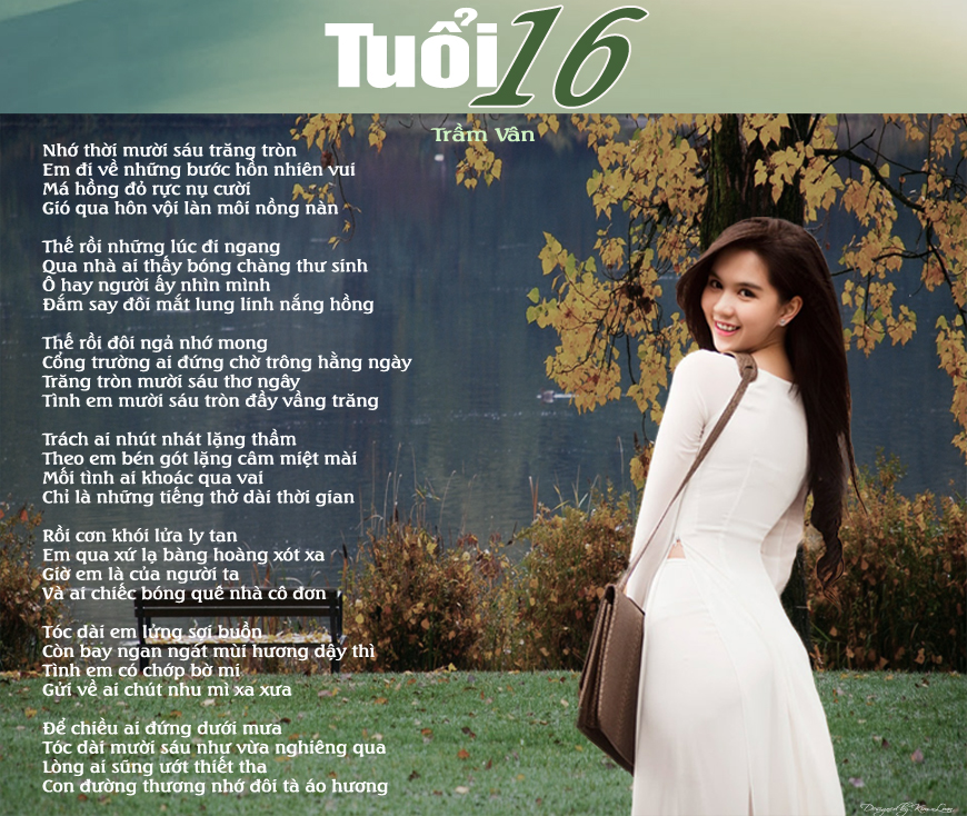 Những vần thơ tình mượt mà, ngọt ngào của tuổi 16 trăng tròn , TT do KL thực hiện rất là xinh . Thân chúc anh TV luôn sáng tác những dòng thơ trữ tình , KL thêm sức khỏe, thực hiện TT tươi đẹp . Thân quý , MG
