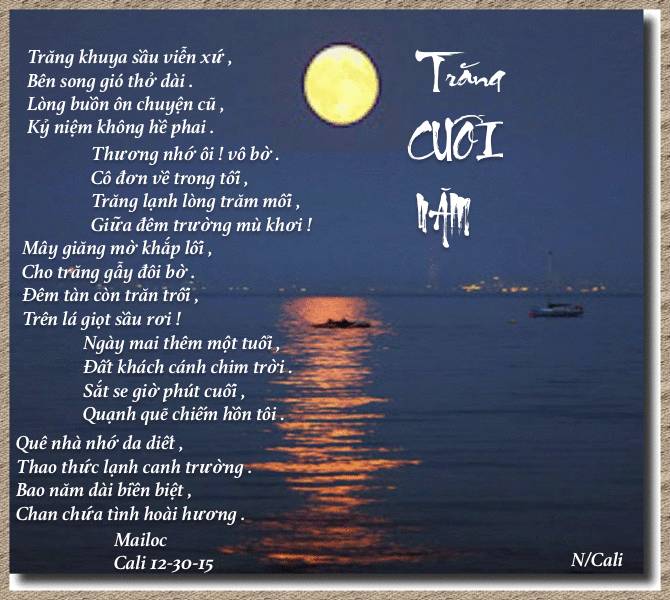 Sống đời phiêu bạc xứ người mà tuổi đời ngày càng chồng chất, nhà thơ đã thố lộ nội tâm u buồn của mình bằng những dòng thơ trử tình, dạt dào lòng nhớ quê. Khung tranh trang nhả, với ánh trăng bàng bạc trong khung cảnh trời đêm đã tô đậm nét u buồn của ý thơ . Trân quý cảm ơn. Minh Lê.