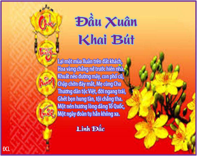 Mấy năm xa xứ, Tết này Linh Đăc khai bút, bút của Linh Đắc là bút thép. Thép cứng nên đâm kẻ gian chẳng tà. Mong mọi người khai bút như Linh Đắc chắc bọn giặc sẽ chùng tay không còn hung hảng như hiện tại. Tranh của Đỗ Công Luận tươi mát rất hợp với mùa xuân. Thân chúc hai bạn an vui trong ba ngày Tết. Thân chào...Nguyễn Thành Sơn