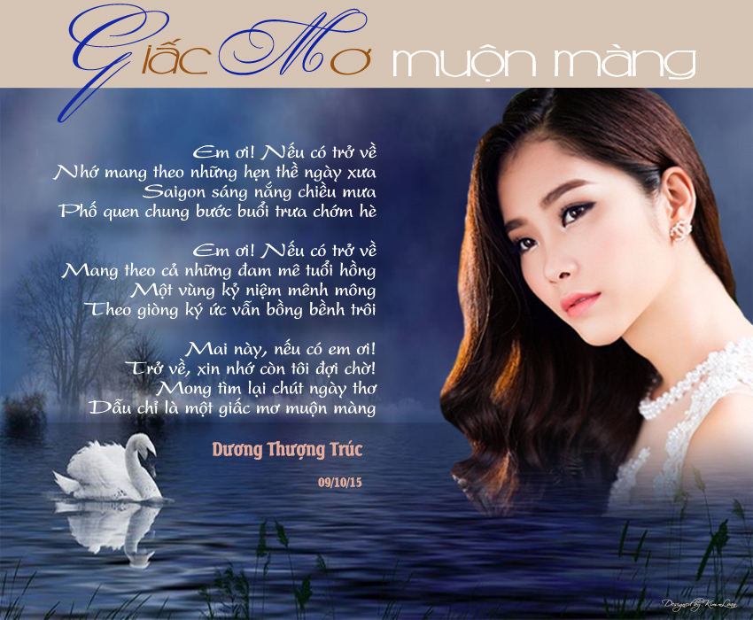 Cám ơn nghệ sĩ Kim Loan đã thiết kế một bức thơ tranh tuyệt đẹp.Hình ảnh, màu sắc và ánh sáng rất mỹ thuật cùng với một bài thơ rất trữ tình mà ý thơ là hy vọng khi người xưa trở về mang theo bao kỷ niệm đáng yêu để: "Mong tìm lại chút ngày thơ . Dẫu chỉ là một giấc mơ muộn màng " Cám ơn. Giang Võ.