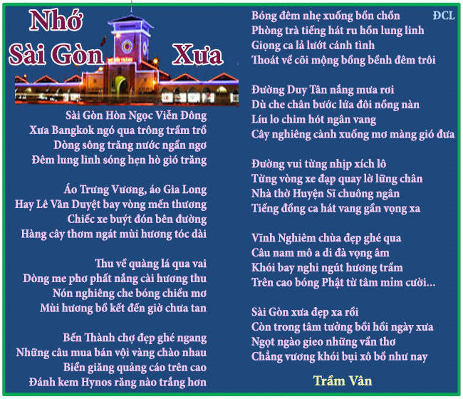 Tác giả TV đã ghi lại quang cảnh Sài Gòn xưa xa xua thật đầy đủ nên thơ trong trật tự an vui an vui hạnh phúc Ngày ấy cảnh đẹp nay đâu, lòng chùng xuống mỗi khi tháng tư buồn lại về Cảm ơn thi hửu Trầm Vân với nhiều bài lục bát thật trọn vẹn ý tình