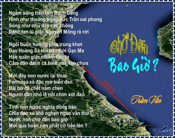 Khung thơ tranh đẹp, trang nhả. Ý thơ gợi lòng yêu quê hương đất Tổ, trước thảm họa mất Đất , mất Biển... cùng thảm họa môi trường sống đã bị nhiểm độc bởi chính con người!! nên tác giả mong mọi người đứng lên đấu tranh cho quyền Sống của Dân tộc, chứ không thể thờ ơ trước thảm cảnh mà toàn dân đang đối đầu : "Nước non chờ đến bao giờ "Mới qua hoạn nạn phất cờ tiến lên ?". Trân trọng cảm ơn tác giả. Đại Nghĩa.