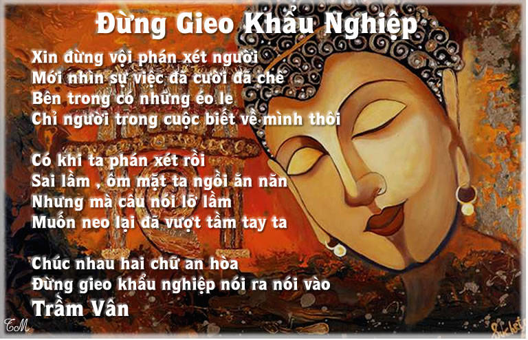 Đừng gieo khẩu nghiệp. Có lẽ, không dưới 60% đau khổ của chúng ta do khẩu nghiệp mang lại. Làm chủ được lời nói của mình thì hay biết mấy. Nhận định sáng tác phẩm của người, âu cũng vướng vào khẩu nghiệp./.