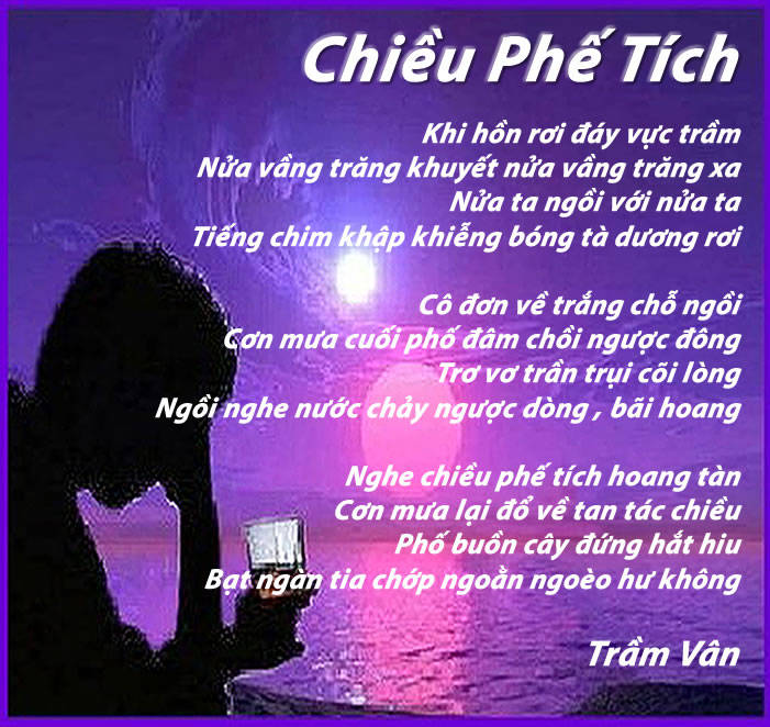 Đã có mấy ý kiến nhận định về thơ Trầm Vân, nhưng lại quên, thành ra mất tiêu luôn. Muốn viết lại ma viết không được. Thôi thì cũng do cái < nghiệp>. Như vậy đó. Phải chấp nhận thôi. Bài lục bát gồm ba đoạn, mỗi đoạn bốn câu. Chưa thấy những hình tượng trong bút pháp tạo xúc cảm.Sáng tác như thế nầy cũng đã đạt lắm rồi./.