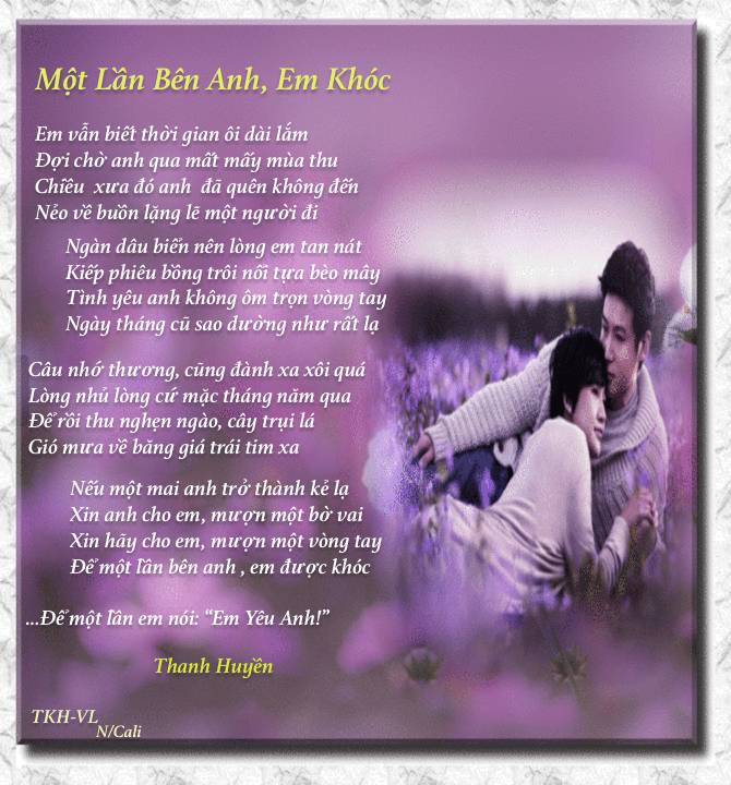 Bài thơ buồn quá, pha chút lãng mạn dễ thương lại được lồng trong một khung tranh mà hình ảnh hài hoà với chủ đề của bài thơ . Màu tím là màu của tình yêu, của nhớ nhung, cùng sự son sấc của con tim đễ chiu đựng trong Cô Đơn. Chữ rỏ nét dễ đọc. Một khung tranh đẹp và sinh động. Chân thành cám ơn 2 tác giả thơ và tranh. Phương Võ.
