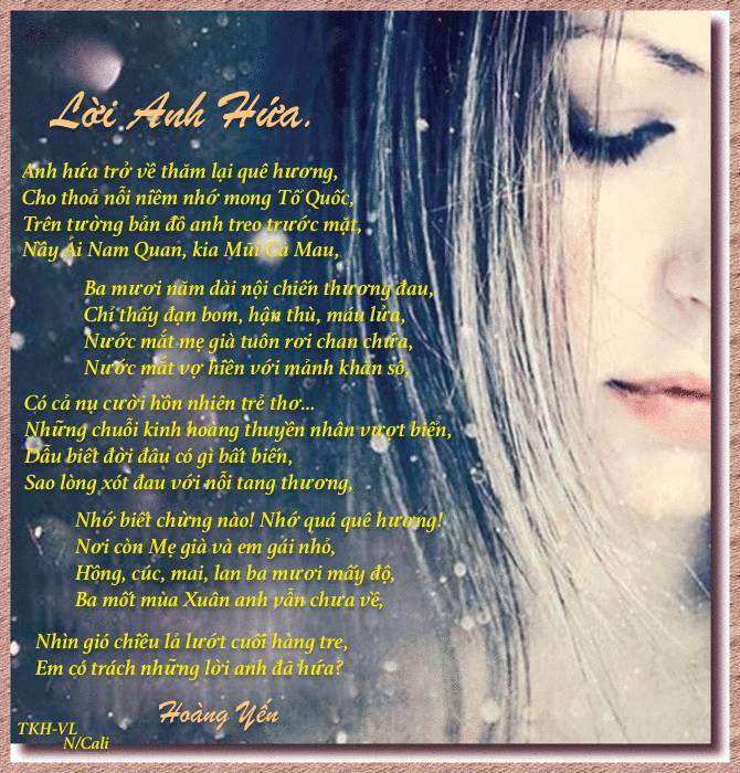 Bài thể loại thơ mới hiu hắt buồn như dòng lệ lử thứ của người cô phụ đêm đông. Ôi! Đất nước tôi dù nghèo xấu nhưng tôi thương hơn bất cứ đất nước dù giàu đẹp nào. Đơn giản là vì ở đó nhau tôi được chôn, rún tôi được cắt! Đất nước tôi: gần thì tôi thương, xa thì tôi nhớ, thương nhớ muôn trùng: Nhớ biết chừng nào! Nhớ quá quê hương! Nơi còn mẹ già và em gái nhỏ, Hồng, cúc, mai, lan, ba mươi mấy độ, Ba mốt mùa Xuân, anh vẫn chưa về. Niềm đau thương vô tận không chỉ hiện hữu ở lòng một người mà thật sự ở lòng mấy triệu người con Việt! Tất cả do chiến tranh! Hậu quả chiến tranh khủng khiếp đến mức không sao lường được! Kinh khiếp thay, tham vọng của con người. Lời thơ lặng lẽ như dòng Cửu Long, ngày hai buổi lớn ròng, chất chứa tình cảm sâu rộng đối với Tổ quốc thiêng liêng ngàn yêu, trăm dấu khiến người đọc không sao ngăn được ngọn trào lòng./.