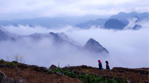 Và sương mờ giăng giăng che đỉnh núi.
