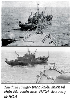Ghi Chú: (1) Tàu ngụy trang của Trung Cộng bị neo HQ 16 móc tan tành đài chỉ huy ( HQ trung úy Hà Đăng Ngân kể lại).