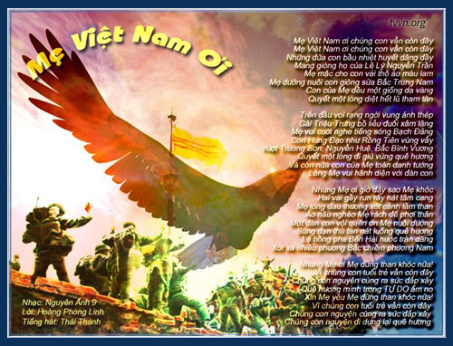 (Quốc Hận 2016 - Cảm xúc viết bài thơ này giữa đêm khuya vùng trời lưu vong vắng lặng khi ngồi nghe lại bản nhạc “Mẹ Việt Nam ơi – Chúng con vẫn còn đây”, thơ tôi viết từ năm 1972 trên quê hương tràn ngập khói lửa chiến chinh, nhạc sĩ Nguyễn Ánh 9 phổ nhạc… )