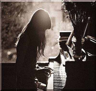 Làm sao thu nhỏ không gian/Cho đàn nức nở âm vang về nguồn/Hoà tan giòng lệ đang tuôn/Để hai thành một tâm hồn đan nhau/Ước mơ mộng đẹp mai sau/Người xưa tái ngộ bên cầu sông Tương.(Tiếng đàn trong đêm/2013-CN/H.N.T.)