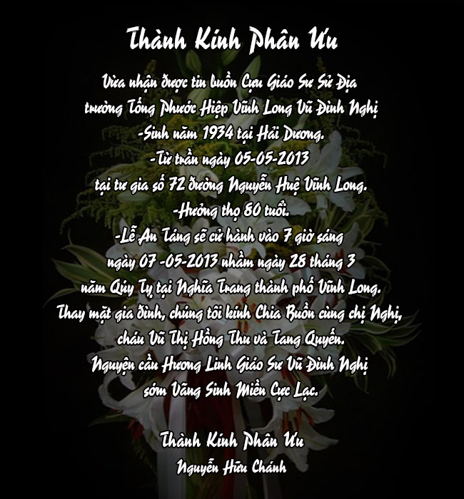 Trung Học TKH Vĩnh Long Thành Kính Phân Ưu... - 09.03.2016
