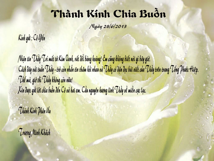 Trương Minh Khách Thành Kính Chia Buồn Cùng Gia Đình Thầy Huỳnh Hữu Trí - 06.28.2013